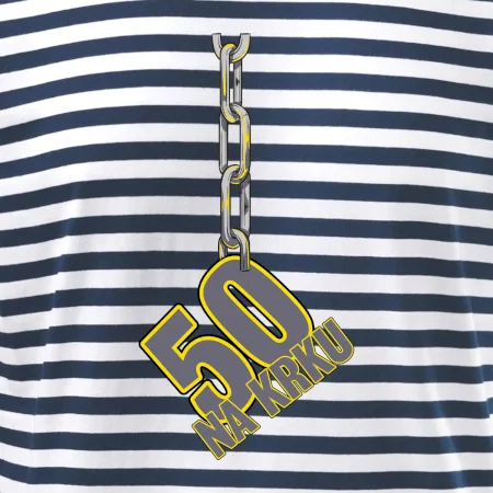 Narodeninové tričko pre oslávenca, ktorý oslavuje jubileum 50 rokov. Tričko, na ktorom je číslovka 50 na reťazi. Darček k päťdesiatym narodeninám.