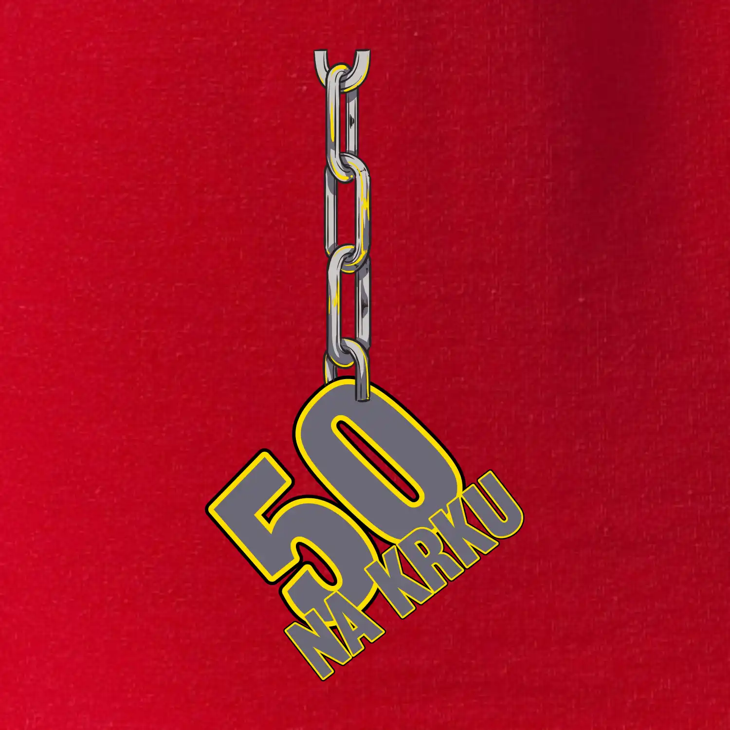 Narodeninové tričko pre oslávenca, ktorý oslavuje jubileum 50 rokov. Tričko, na ktorom je číslovka 50 na reťazi. Darček k päťdesiatym narodeninám.