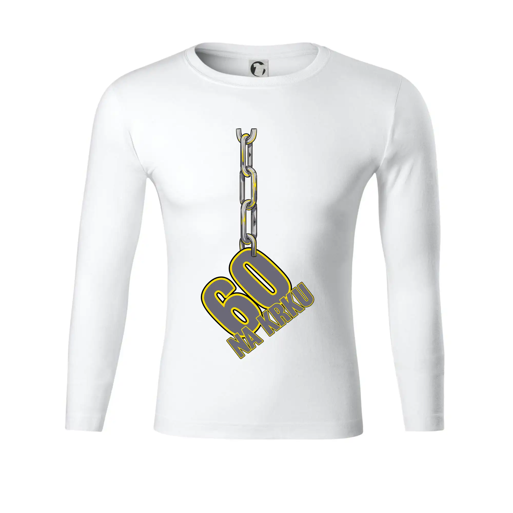 Narodeninové tričko pre oslávenca, ktorý oslavuje jubileum 60 rokov. Tričko, na ktorom je číslovka 60 na reťazi. Darček k šesťdesiatym narodeninám.
