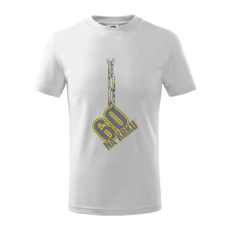 Narodeninové tričko pre oslávenca, ktorý oslavuje jubileum 60 rokov. Tričko, na ktorom je číslovka 60 na reťazi. Darček k šesťdesiatym narodeninám.