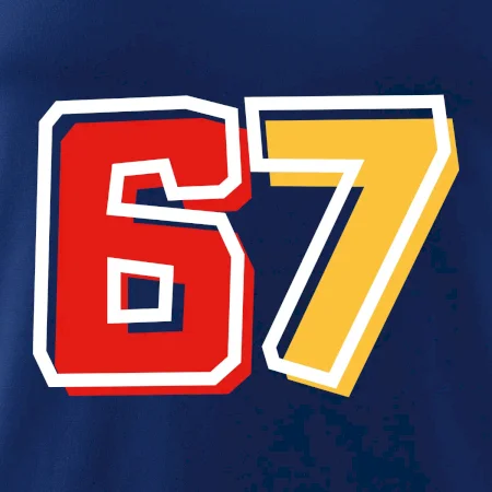 Tričko s číslem 67 ve vysoké gramáži. Ideální dárek k narozeninám nebo výročí! Pohodlný střih a kvalitní potisk, který vydrží. Skladem u nás.
