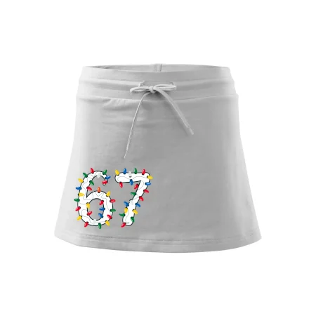 Dámska kraťasová sukňa MALFINI Two in One 604 je perfektnou kombináciou sukne a šortiek, ideálna na šport, voľný čas alebo ležérne nosenie. Vďaka prídavku elastanu si sukňa zachováva tvar a ponúka pohodlie pri pohybe. Krátky strih do tvaru „A“ a široký elastický pás so sťahovacou šnúrkou zabezpečujú voľnosť a prispôsobenie.