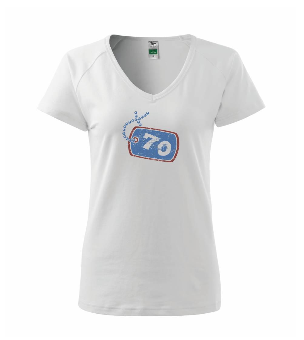 Narodeninové tričko pre oslávenca, ktorý oslavuje jubileum 70 rokov. Tričko, na ktorom je psia známka s číslovkou 70. Darček k sedemdesiatym narodeninám.
