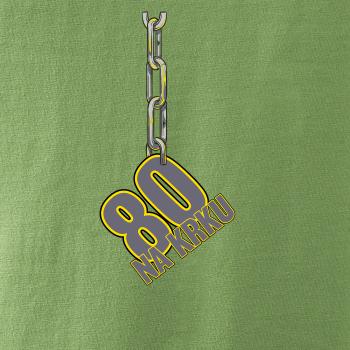 Narodeninové tričko pre oslávenca, ktorý oslavuje jubileum 80 rokov. Tričko, na ktorom je číslovka 80 na reťazi. Darček k osemdesiatym narodeninám.