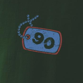 Narodeninové tričko pre oslávenca, ktorý oslavuje jubileum 90 rokov. Tričko, na ktorom je psia známka s číslovkou 90. Darček k deväťdesiatym narodeninám.