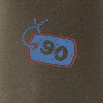 Narodeninové tričko pre oslávenca, ktorý oslavuje jubileum 90 rokov. Tričko, na ktorom je psia známka s číslovkou 90. Darček k deväťdesiatym narodeninám.