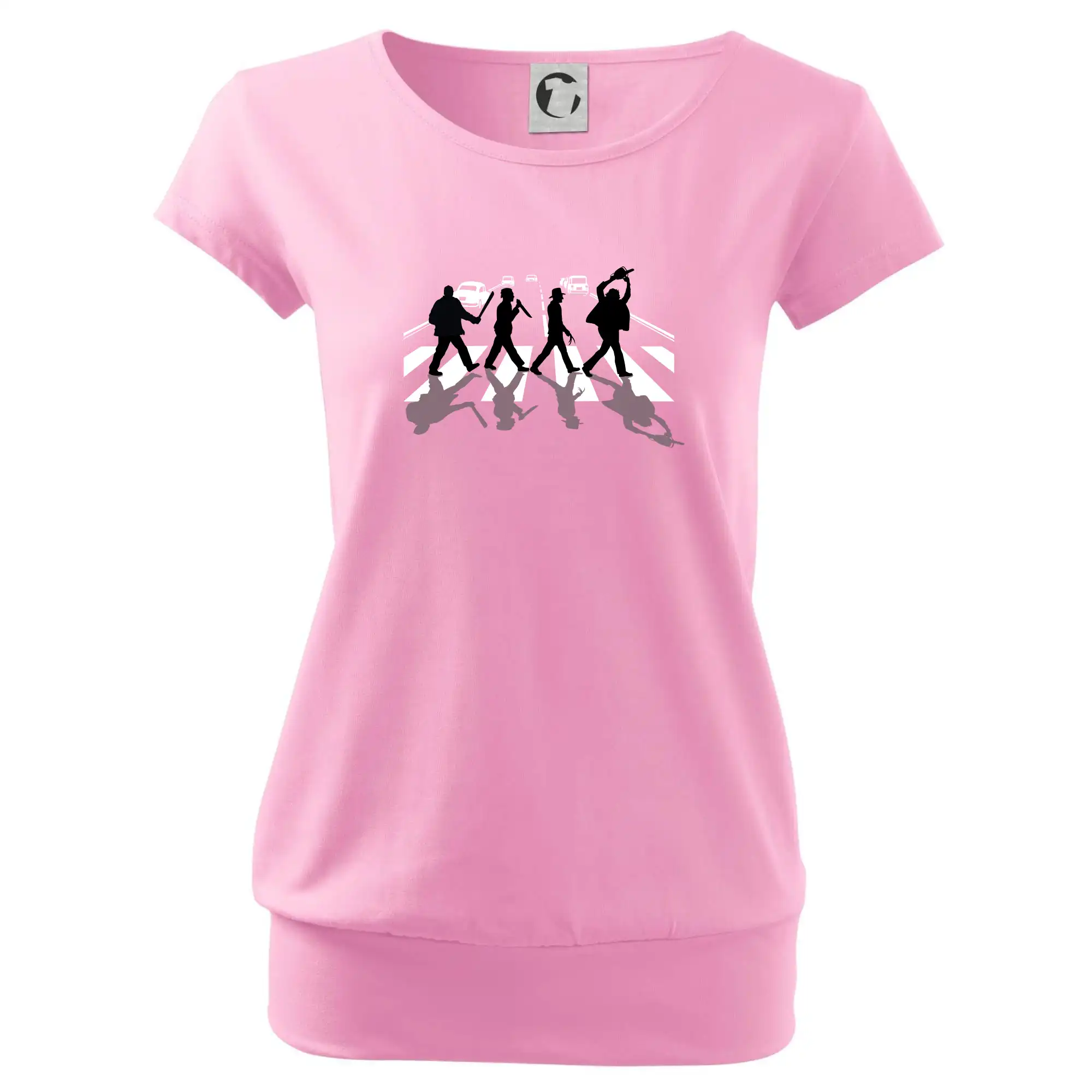 Trendové dámske tričko s veľmi krátkym rukávom, voľnejšieho strihu, v dolnom kraji všité do širokého lemu. Okrúhly priekrčník s úzkym lemom zo zhodného materiálu.