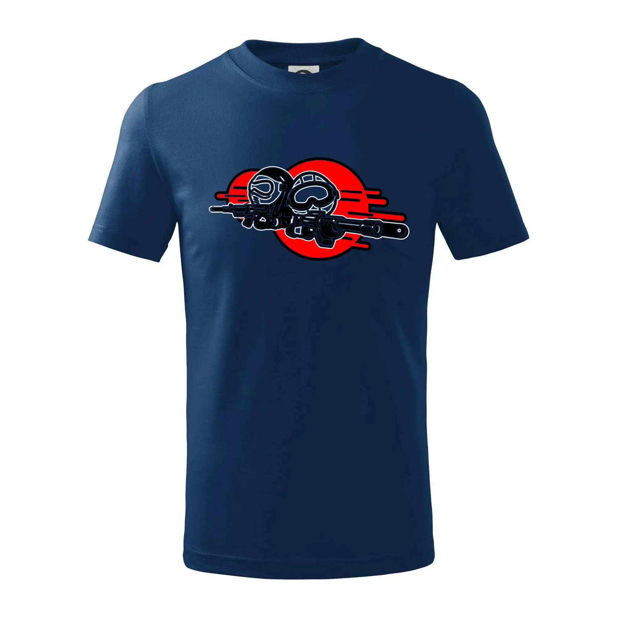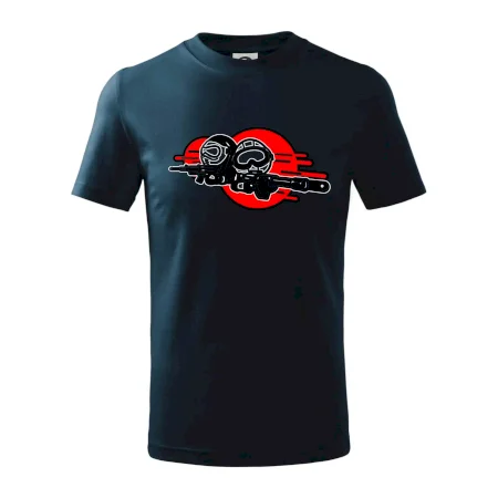 Detské tričko strednej gramáže s bočnými švami. Úzky priekrčník s prídavkom 5% elastanu. Vnútorná časť zadného priekrčníka začistená tkanou páskou. Spevnený ramenný šev.