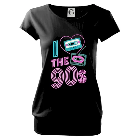 Trendové dámske tričko s veľmi krátkym rukávom, voľnejšieho strihu, v dolnom kraji všité do širokého lemu. Okrúhly priekrčník s úzkym lemom zo zhodného materiálu.