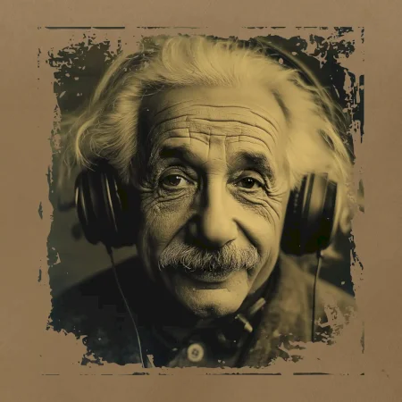 Albert Einstein so slúchadlami