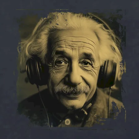 Albert Einstein so slúchadlami