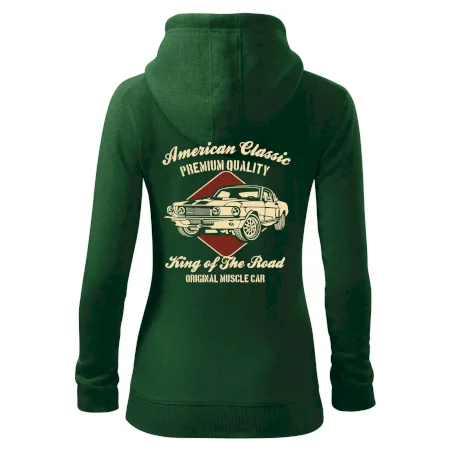 Dámska mikina MALFINI Trendy Zipper 411 spája moderný vzhľad s každodennou praktickosťou. Jej ľahko vypasovaný strih s bočnými švami zvýrazňuje ženskú siluetu, zatiaľ čo celoprepínací zips a kapucňa so sťahovacou šnúrkou dodávajú ležérny nádych.