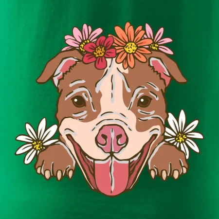 Americký stafordšírsky teriér hlava s kvetinami