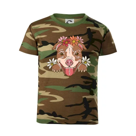 Americký stafordšírsky teriér hlava s kvetinami