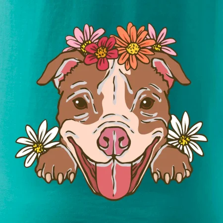 Americký stafordšírsky teriér hlava s kvetinami