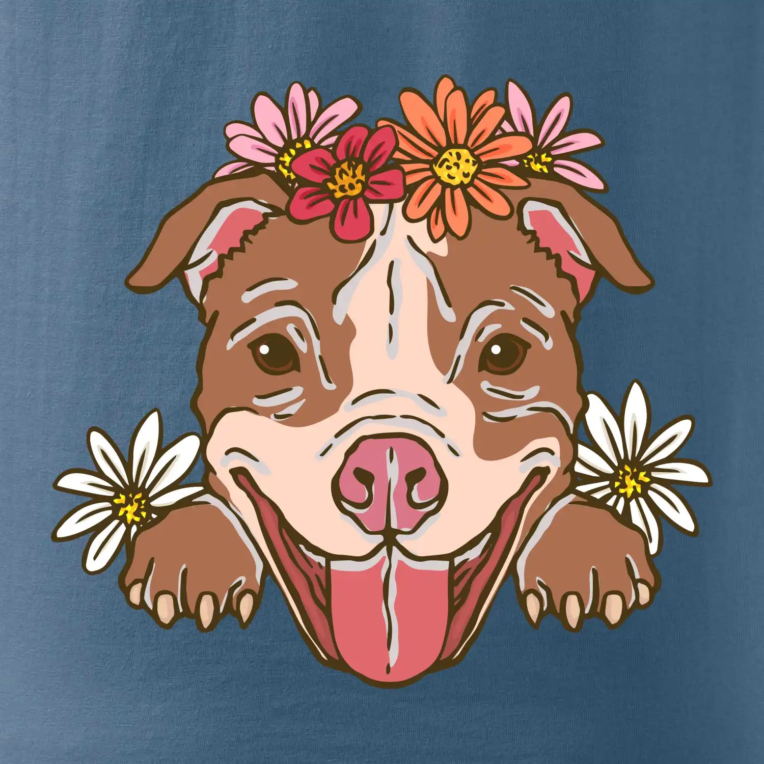 Americký stafordšírsky teriér hlava s kvetinami