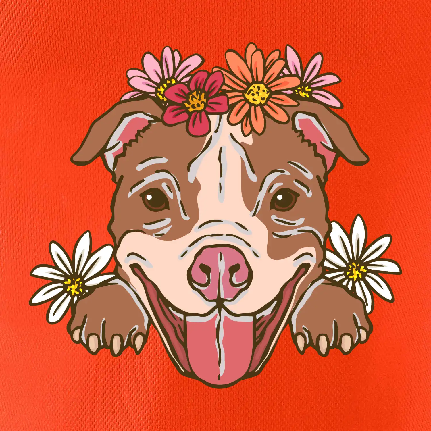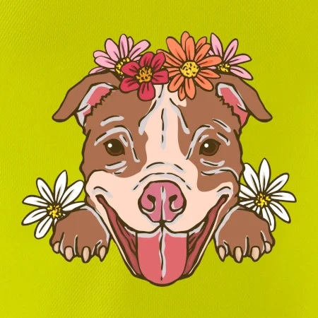Americký stafordšírsky teriér hlava s kvetinami