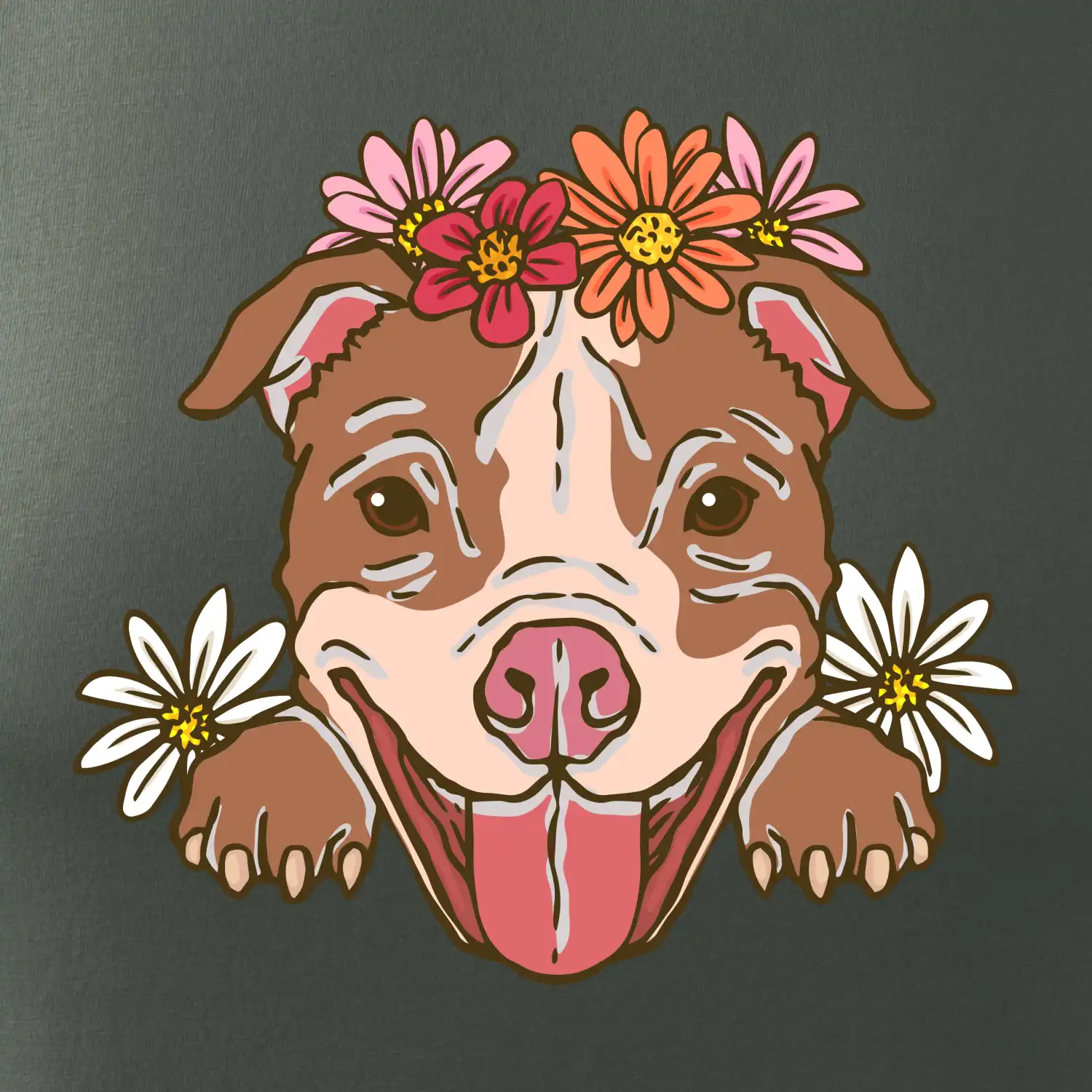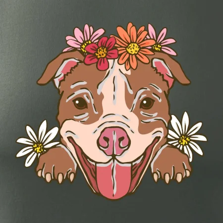 Americký stafordšírsky teriér hlava s kvetinami