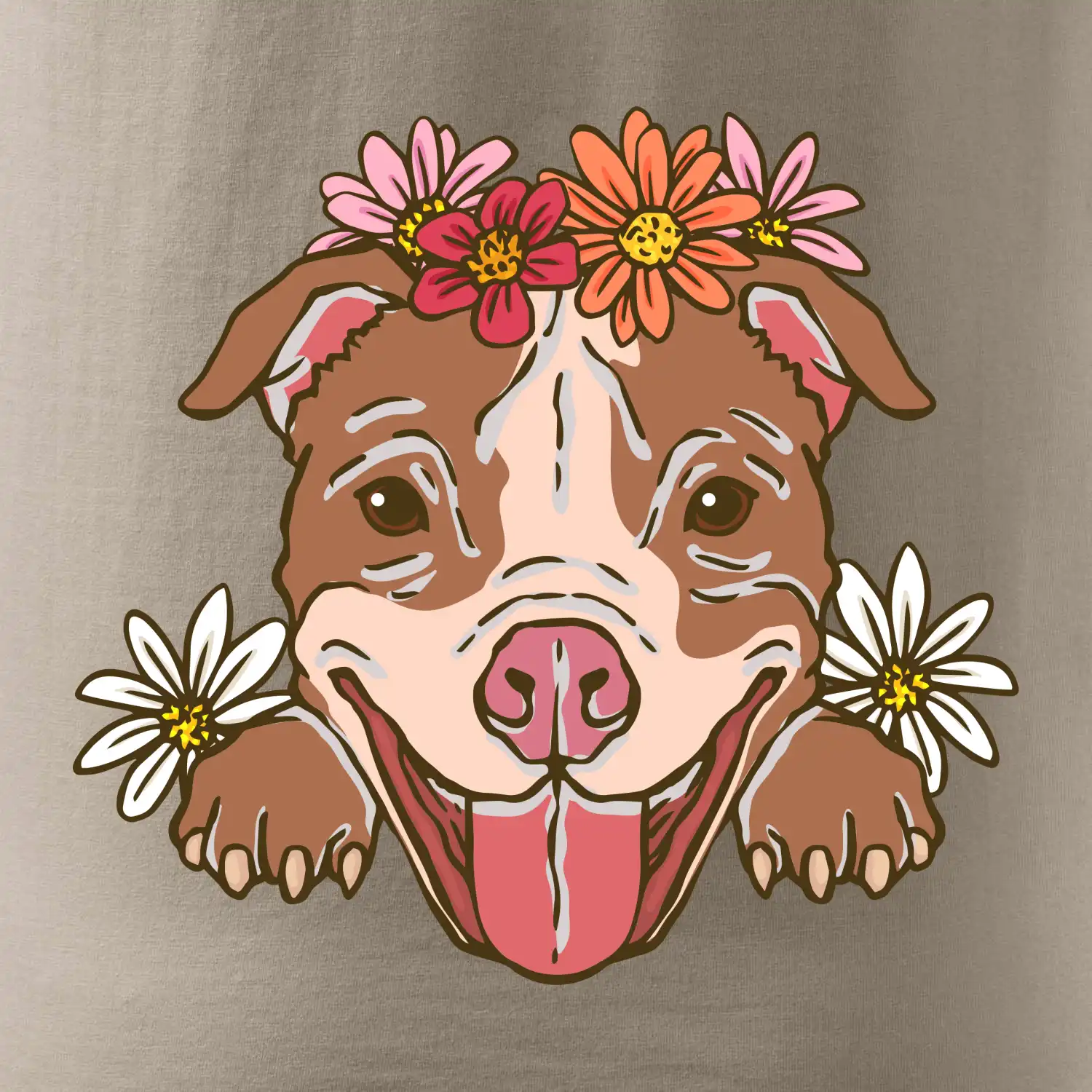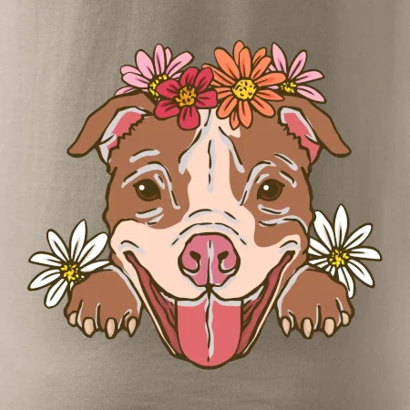 Americký stafordšírsky teriér hlava s kvetinami