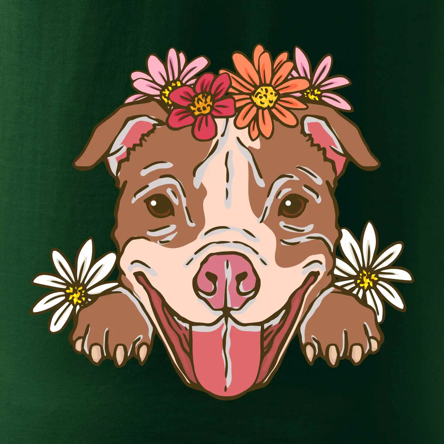 Americký stafordšírsky teriér hlava s kvetinami