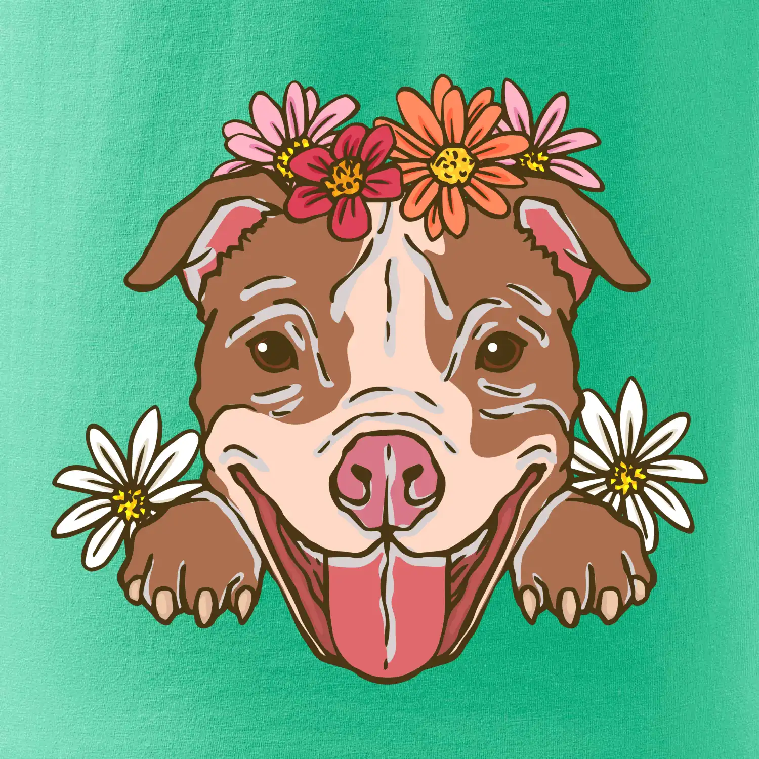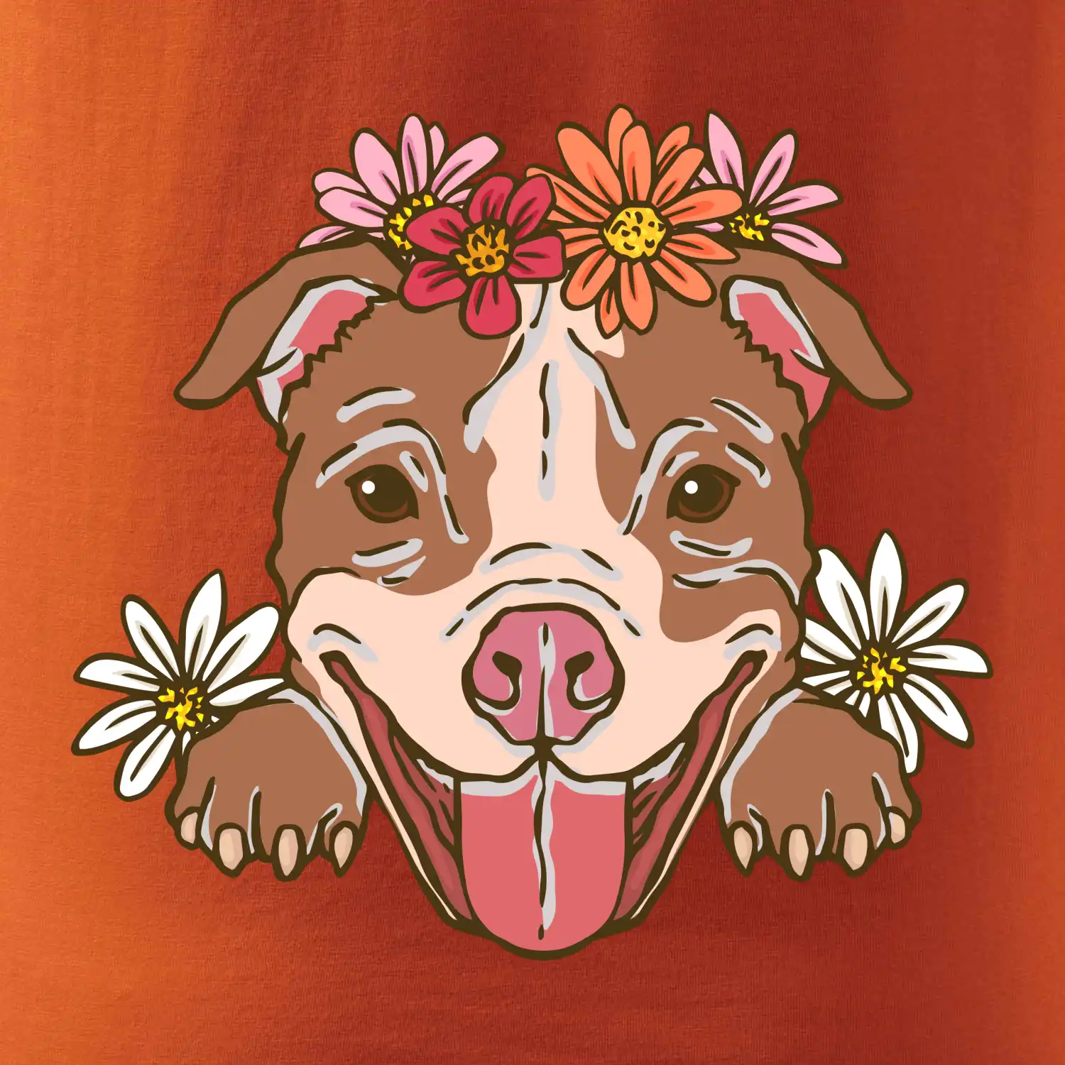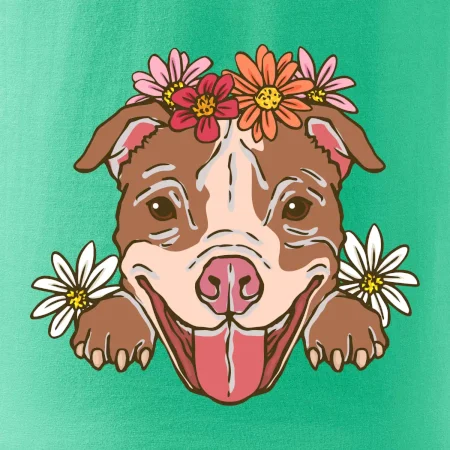 Americký stafordšírsky teriér hlava s kvetinami