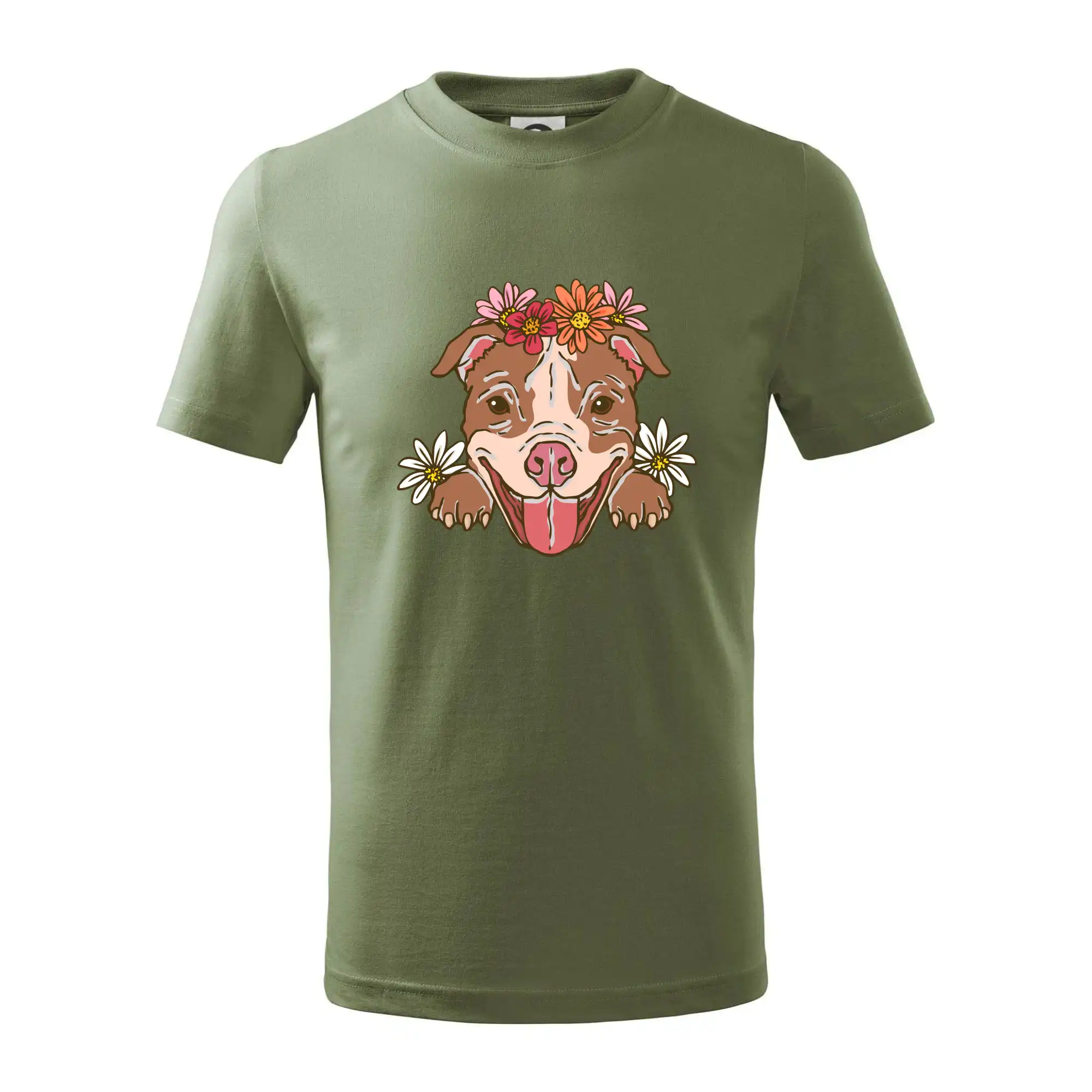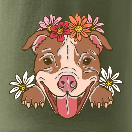 Americký stafordšírsky teriér hlava s kvetinami