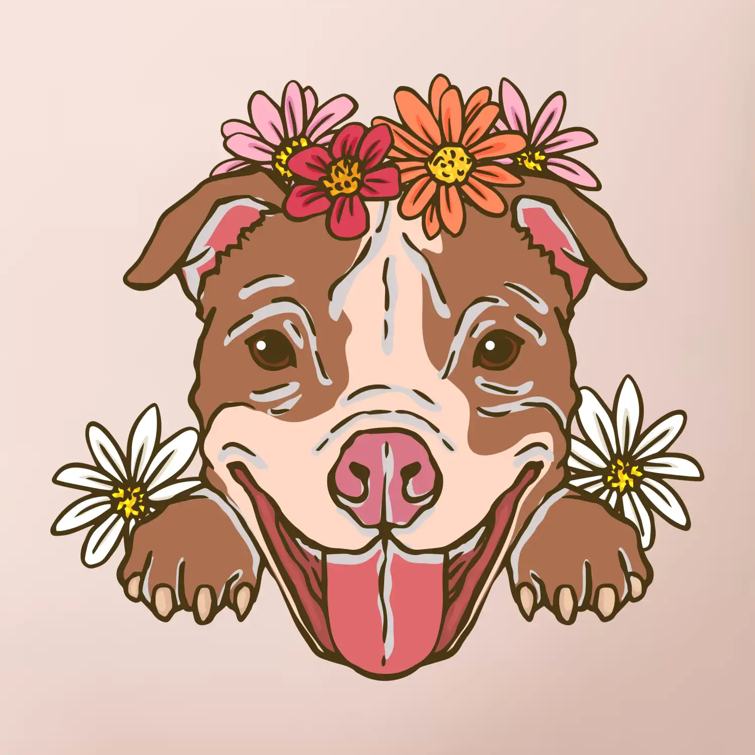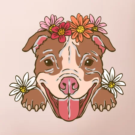Americký stafordšírsky teriér hlava s kvetinami