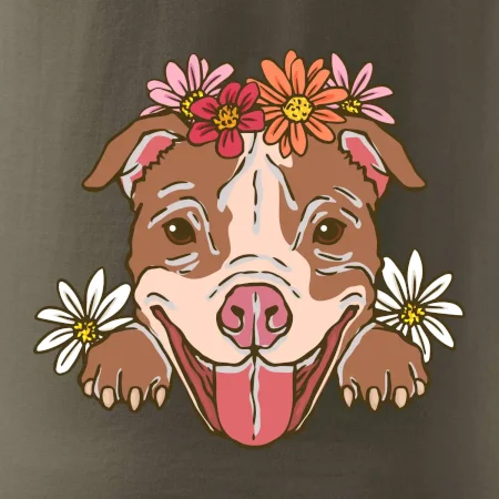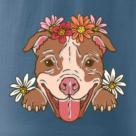 Americký stafordšírsky teriér hlava s kvetinami