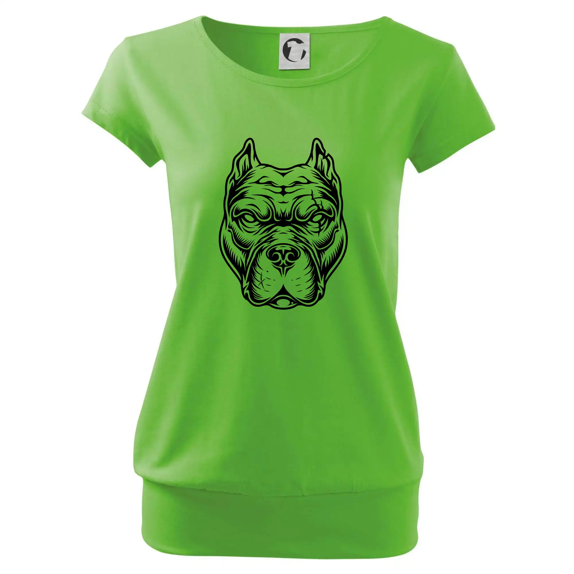 Trendové dámske tričko s veľmi krátkym rukávom, voľnejšieho strihu, v dolnom kraji všité do širokého lemu. Okrúhly priekrčník s úzkym lemom zo zhodného materiálu.