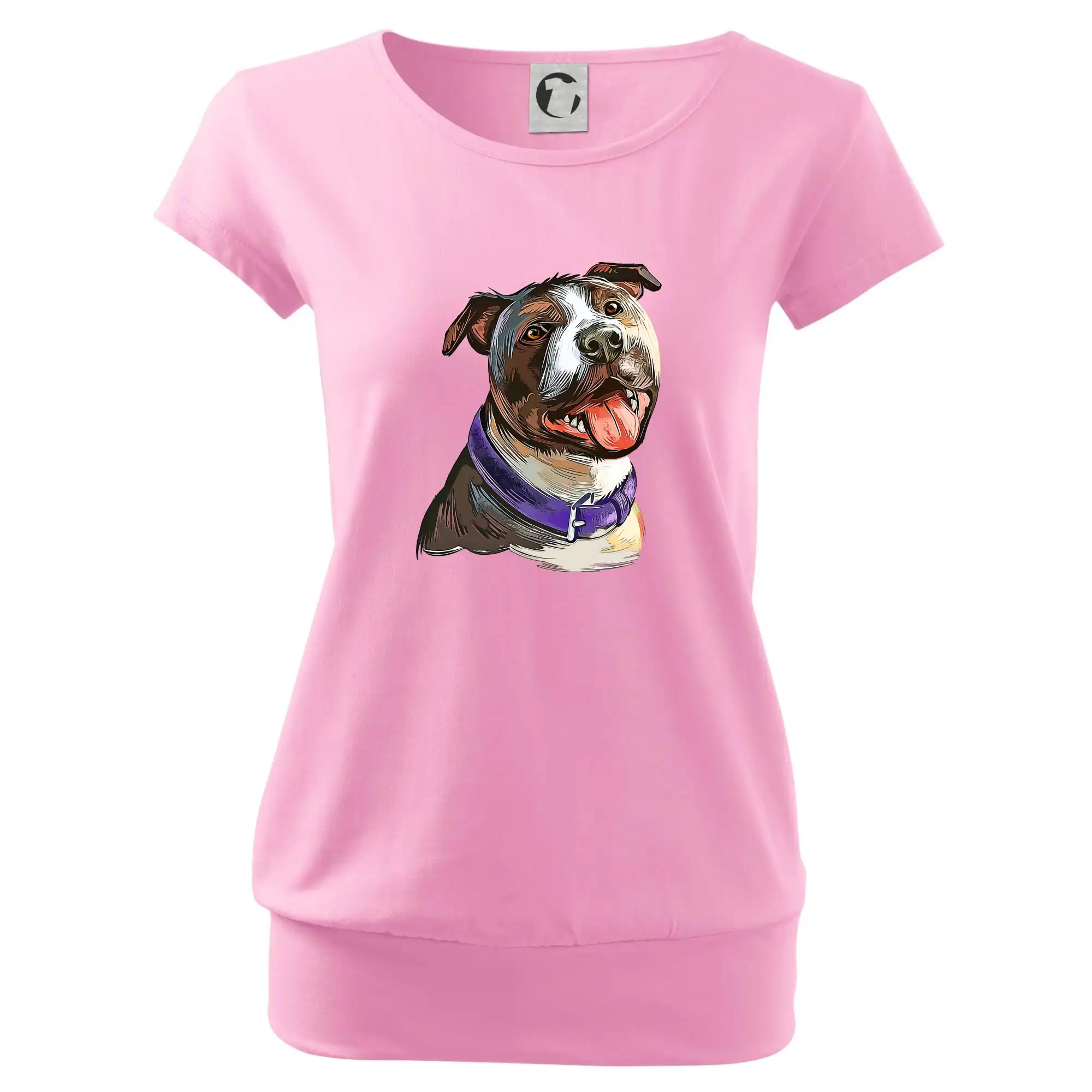 Trendové dámske tričko s veľmi krátkym rukávom, voľnejšieho strihu, v dolnom kraji všité do širokého lemu. Okrúhly priekrčník s úzkym lemom zo zhodného materiálu.