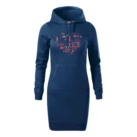 Dámske mikinové šaty MALFINI Snap 419 sú ideálnou voľbou pre ženy, ktoré hľadajú pohodlný a štýlový kúsok na voľný čas alebo každodenné nosenie. Ľahko vypasovaný strih s bočnými švami podčiarkuje ženskú siluetu, zatiaľ čo kapucňa s podšívkou a sťahovacou šnúrkou dodáva ležérny vzhľad. Šaty majú dĺžku nad kolená a sú vybavené našitým vreckom v štýle „klokanky“. Materiál je mäkký a príjemný na dotyk grâce à smesi bavlny a polyesteru s nepočesanou vnútornou stranou.