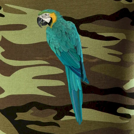 Tričko strednej gramáže vo farbách camouflage. Strih s bočnými švami. Lem priekrčníku z rebrového úpletu s prídavkom 5% elastanu. Vnútorná časť zadného priekrčníka začistená páskou vo farbe camouflage.