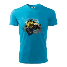 Tričko pre motoristu, na ktorom je žltá štvorkolka ATV. Motoristické tričko, kde je off road štvorkolka musí mať doma každý motorista. Tričko s buggy štvorkolkou je vhodný darček pre motoristu, ktorý má rád adrenalín. Štvorkolka na tričku je ako živá, proste parádne auto.