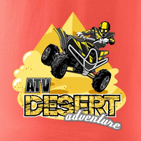 Tričko pre motoristu, na ktorom je atv štvorkolka, v pozadí je púšť a pyramídy. Tričko so štvorkolkou, na ktorom je pyramída, by mal mať každý správny off-road motorista. Tričko so štvorkolkou je vhodný darček pre motoristu, pre ktorého je jazda na štvorkolke ten pravý adrenalín a motosport je jeho život.