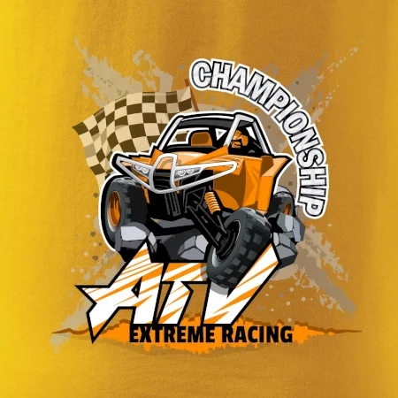 Tričko pre motoristu, na ktorom je oranžová štvorkolka ATV. Motoristické tričko, kde je štvorkolka musí mať doma každý motorista. Tričko s buggy štvorkolkou je vhodný darček pre motoristu, ktorý má rád adrenalín. Štvorkolka na tričku je ako živá, proste parádne auto.