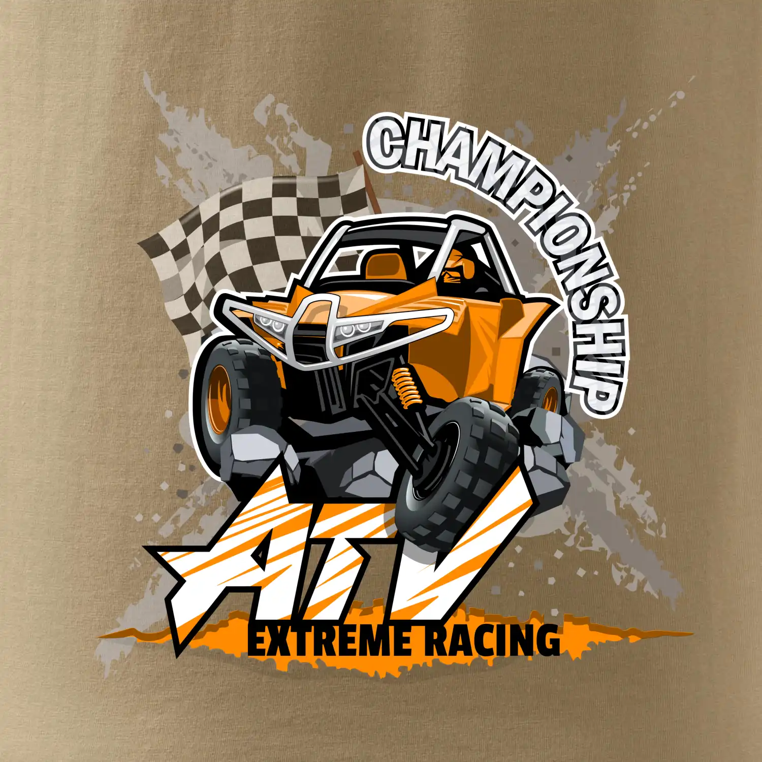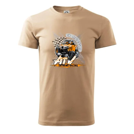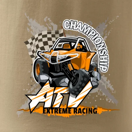 Tričko pre motoristu, na ktorom je oranžová štvorkolka ATV. Motoristické tričko, kde je štvorkolka musí mať doma každý motorista. Tričko s buggy štvorkolkou je vhodný darček pre motoristu, ktorý má rád adrenalín. Štvorkolka na tričku je ako živá, proste parádne auto.