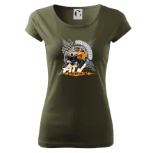 Tričko pre motoristu, na ktorom je oranžová štvorkolka ATV. Motoristické tričko, kde je štvorkolka musí mať doma každý motorista. Tričko s buggy štvorkolkou je vhodný darček pre motoristu, ktorý má rád adrenalín. Štvorkolka na tričku je ako živá, proste parádne auto.