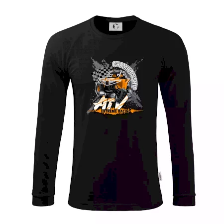 Tričko pre motoristu, na ktorom je oranžová štvorkolka ATV. Motoristické tričko, kde je štvorkolka musí mať doma každý motorista. Tričko s buggy štvorkolkou je vhodný darček pre motoristu, ktorý má rád adrenalín. Štvorkolka na tričku je ako živá, proste parádne auto.