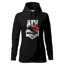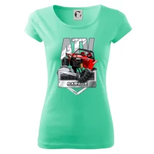 Tričko pre motoristu, na ktorom je červená štvorkolka ATV. Motoristické tričko so štvorkolkou musí mať doma každý motorista. Tričko s autom je vhodný darček pre motoristu, ktorý má rád adrenalín. Auto na tričku je ako živé.