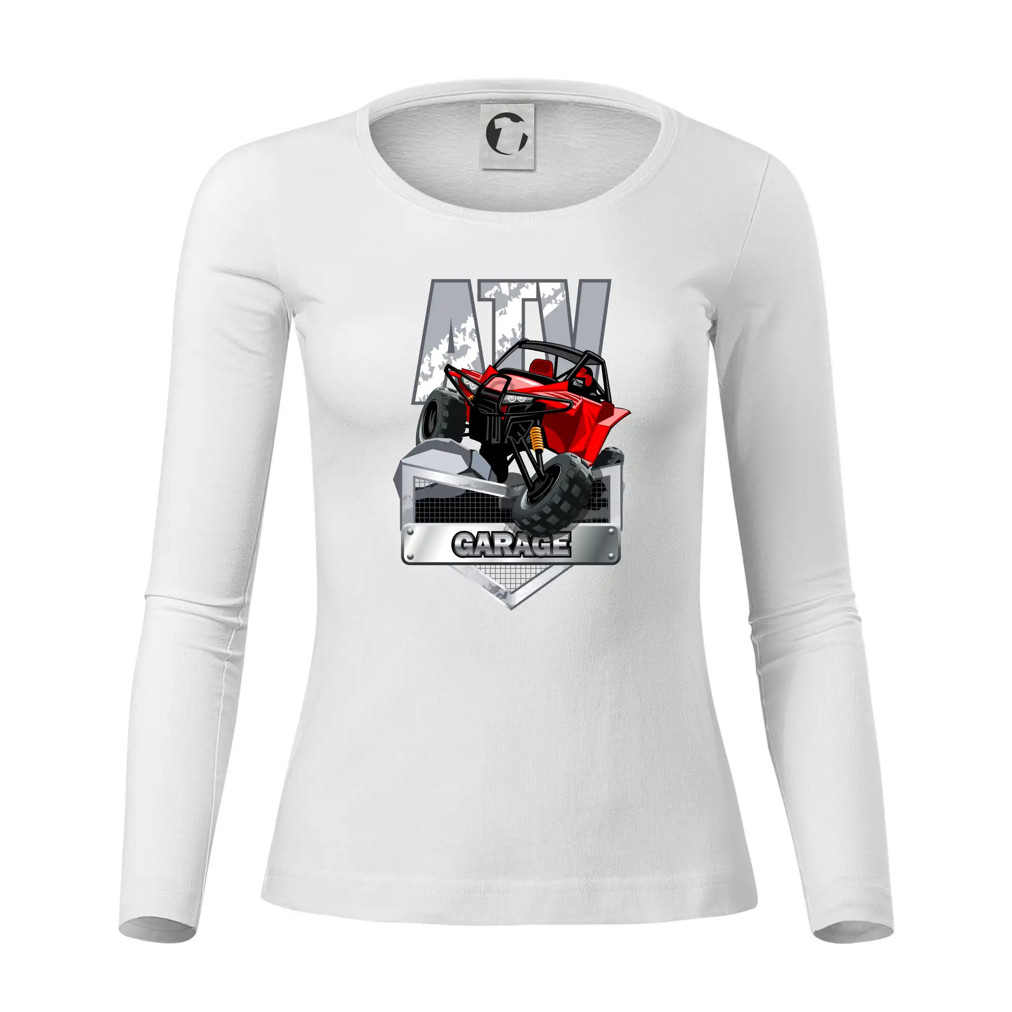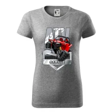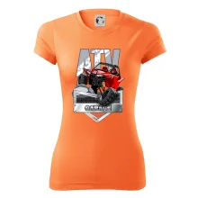 Tričko pre motoristu, na ktorom je červená štvorkolka ATV. Motoristické tričko so štvorkolkou musí mať doma každý motorista. Tričko s autom je vhodný darček pre motoristu, ktorý má rád adrenalín. Auto na tričku je ako živé.