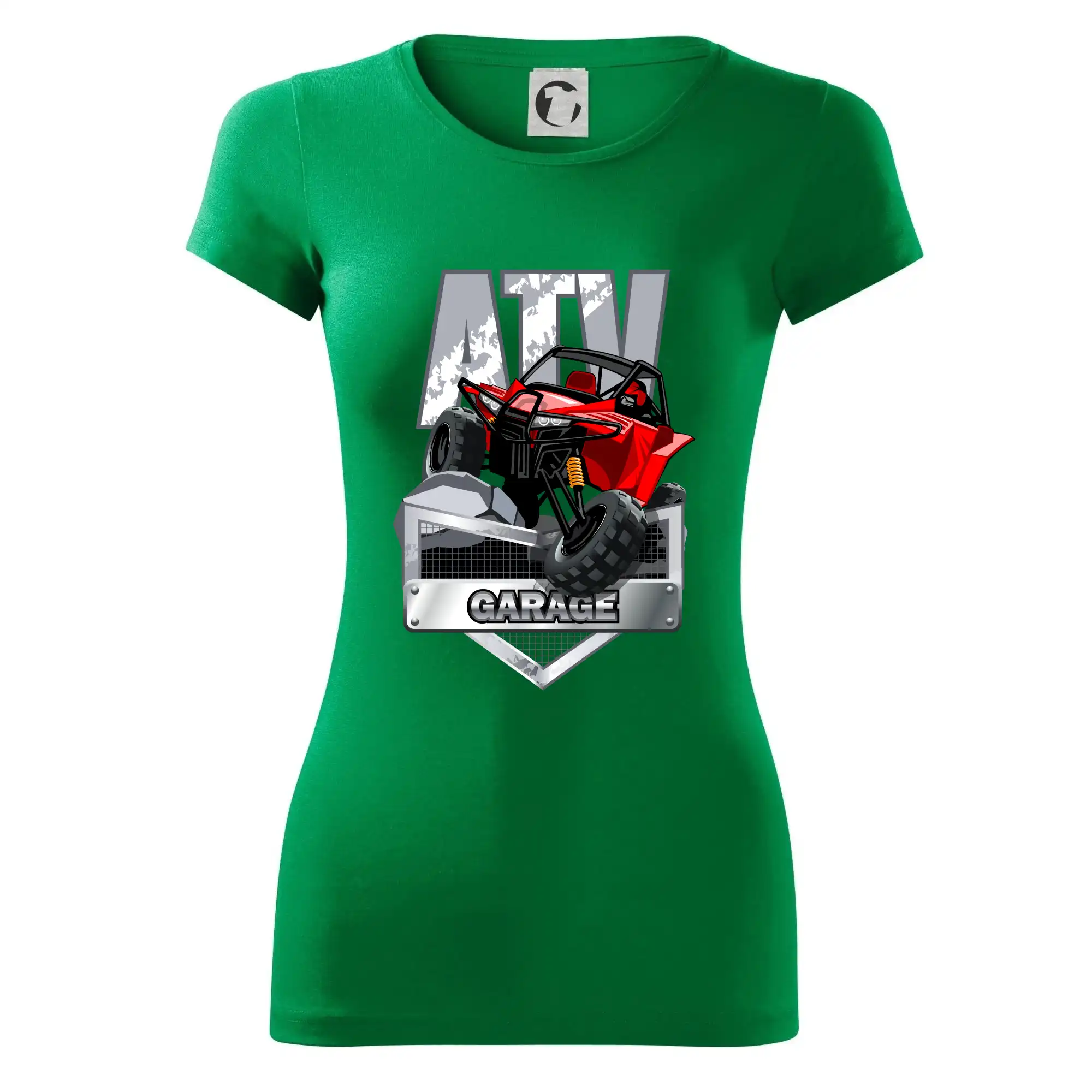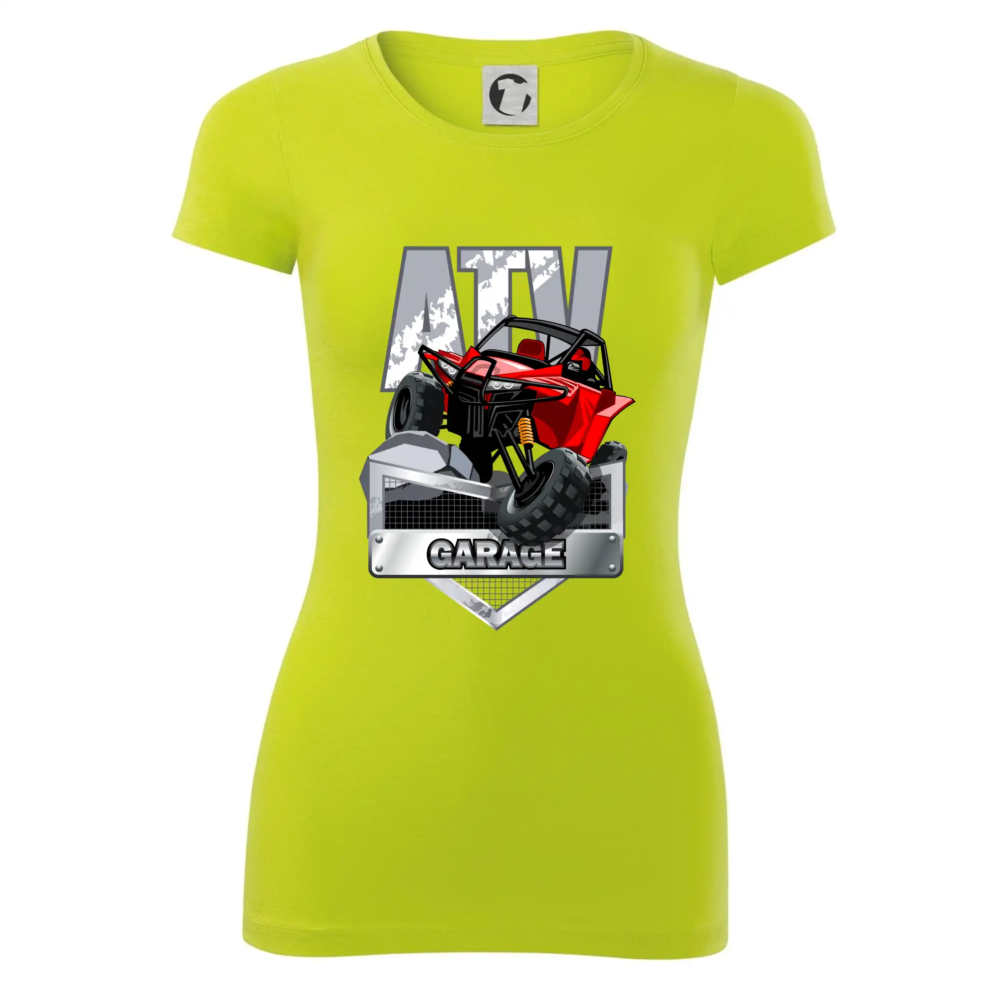 Tričko pre motoristu, na ktorom je červená štvorkolka ATV. Motoristické tričko so štvorkolkou musí mať doma každý motorista. Tričko s autom je vhodný darček pre motoristu, ktorý má rád adrenalín. Auto na tričku je ako živé.
