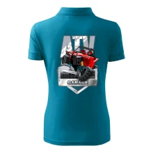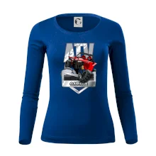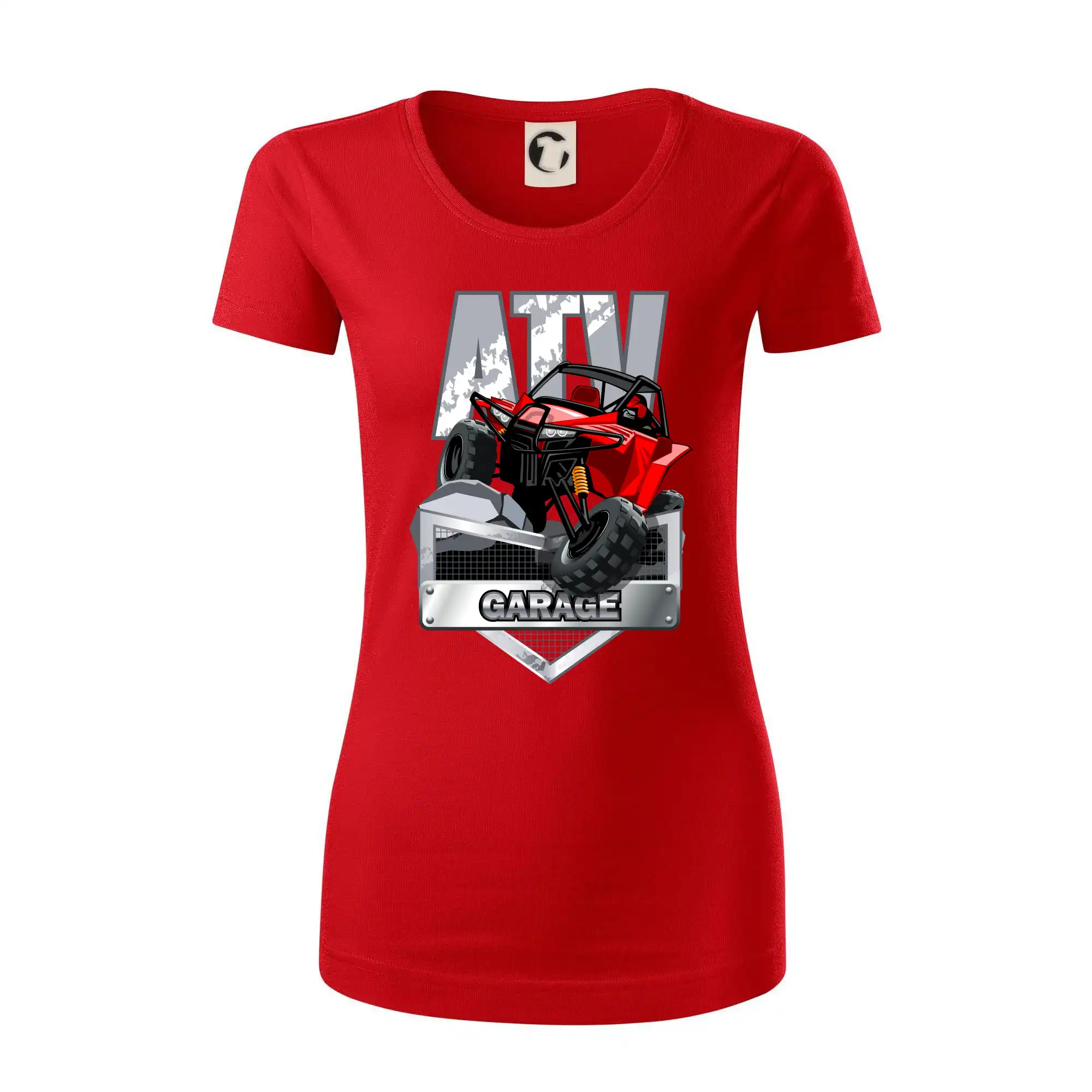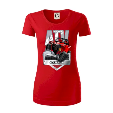 Tričko pre motoristu, na ktorom je červená štvorkolka ATV. Motoristické tričko so štvorkolkou musí mať doma každý motorista. Tričko s autom je vhodný darček pre motoristu, ktorý má rád adrenalín. Auto na tričku je ako živé.