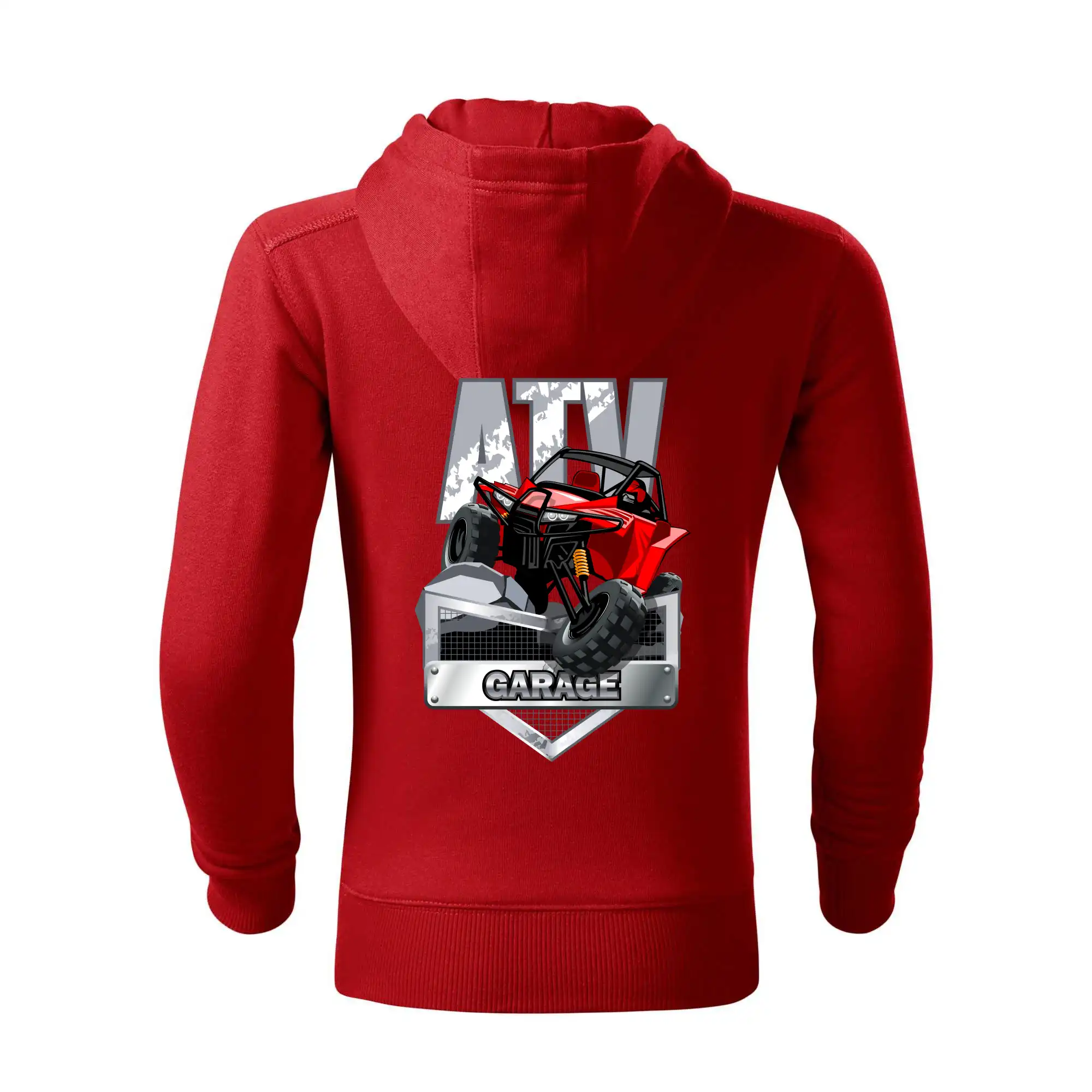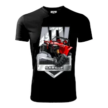 Tričko pre motoristu, na ktorom je červená štvorkolka ATV. Motoristické tričko so štvorkolkou musí mať doma každý motorista. Tričko s autom je vhodný darček pre motoristu, ktorý má rád adrenalín. Auto na tričku je ako živé.