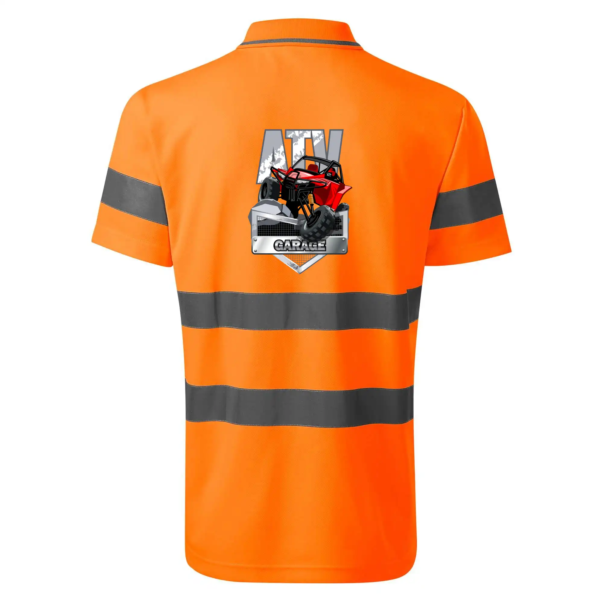 Tričko pre motoristu, na ktorom je červená štvorkolka ATV. Motoristické tričko so štvorkolkou musí mať doma každý motorista. Tričko s autom je vhodný darček pre motoristu, ktorý má rád adrenalín. Auto na tričku je ako živé.