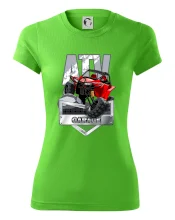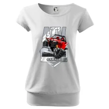 Tričko pre motoristu, na ktorom je červená štvorkolka ATV. Motoristické tričko so štvorkolkou musí mať doma každý motorista. Tričko s autom je vhodný darček pre motoristu, ktorý má rád adrenalín. Auto na tričku je ako živé.