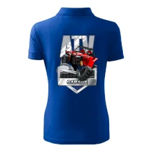 Tričko pre motoristu, na ktorom je červená štvorkolka ATV. Motoristické tričko so štvorkolkou musí mať doma každý motorista. Tričko s autom je vhodný darček pre motoristu, ktorý má rád adrenalín. Auto na tričku je ako živé.
