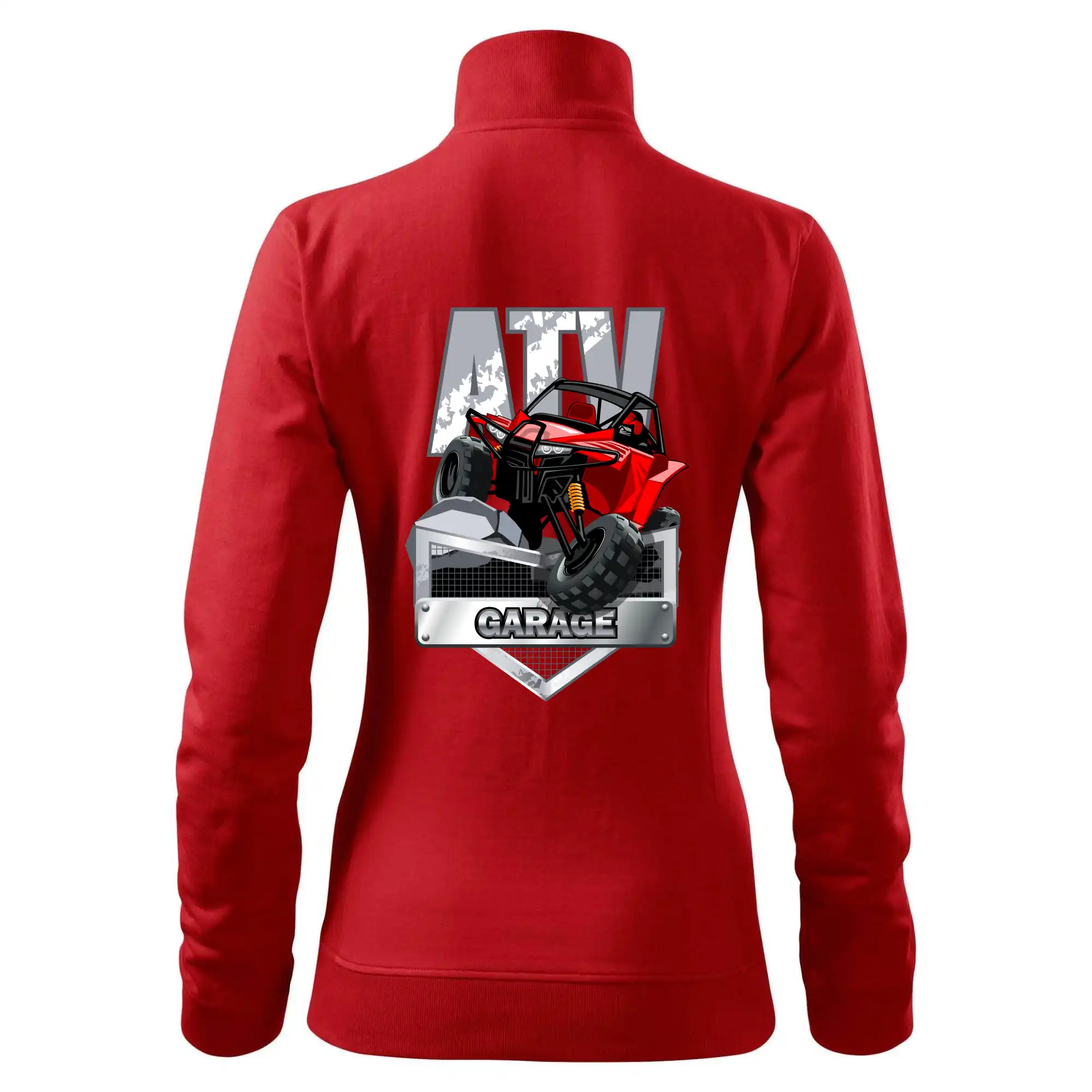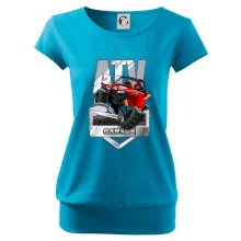Tričko pre motoristu, na ktorom je červená štvorkolka ATV. Motoristické tričko so štvorkolkou musí mať doma každý motorista. Tričko s autom je vhodný darček pre motoristu, ktorý má rád adrenalín. Auto na tričku je ako živé.