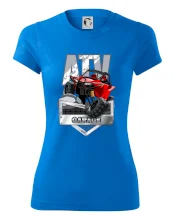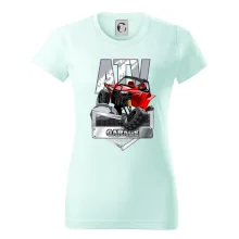 Tričko pre motoristu, na ktorom je červená štvorkolka ATV. Motoristické tričko so štvorkolkou musí mať doma každý motorista. Tričko s autom je vhodný darček pre motoristu, ktorý má rád adrenalín. Auto na tričku je ako živé.
