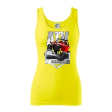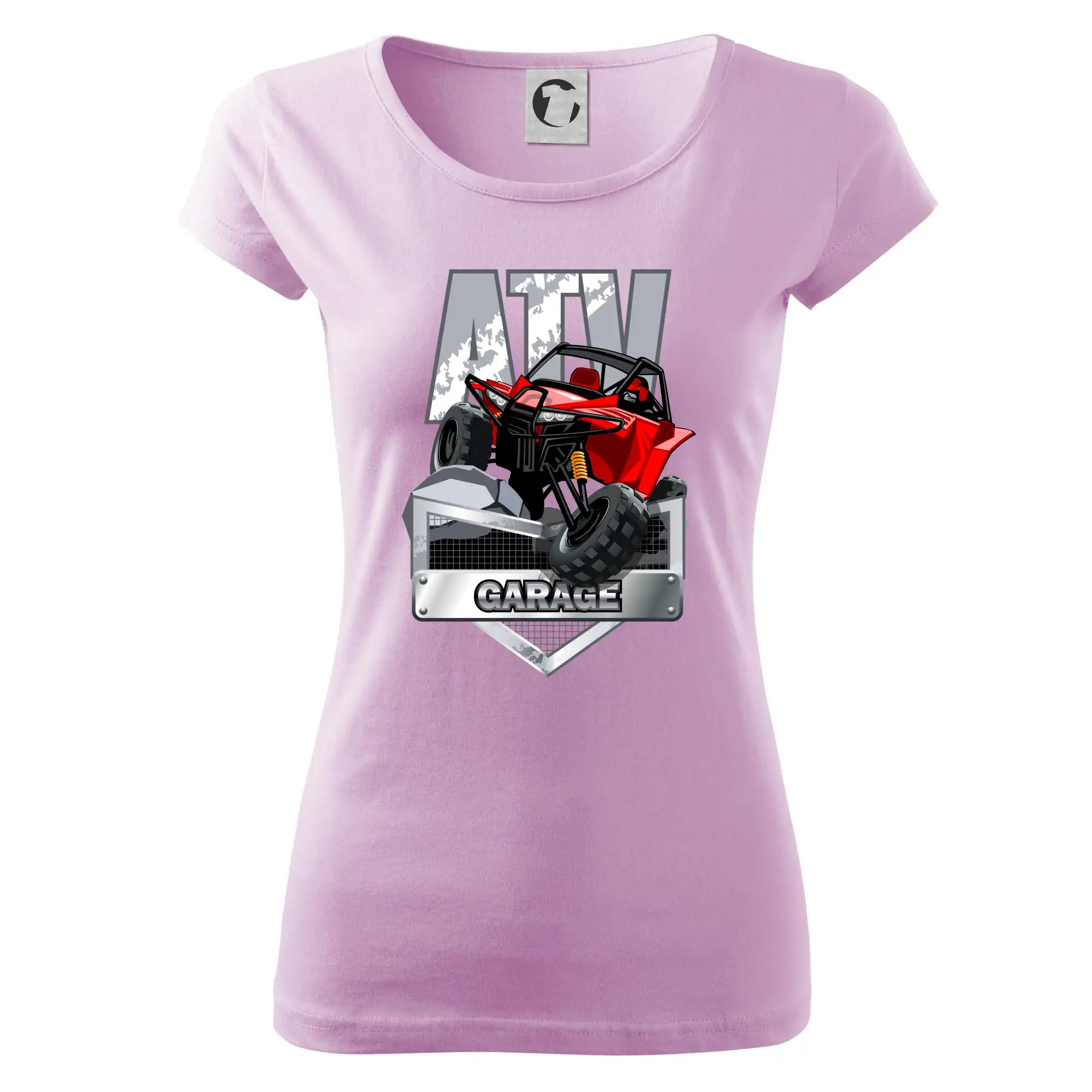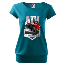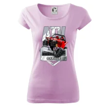 Tričko pre motoristu, na ktorom je červená štvorkolka ATV. Motoristické tričko so štvorkolkou musí mať doma každý motorista. Tričko s autom je vhodný darček pre motoristu, ktorý má rád adrenalín. Auto na tričku je ako živé.