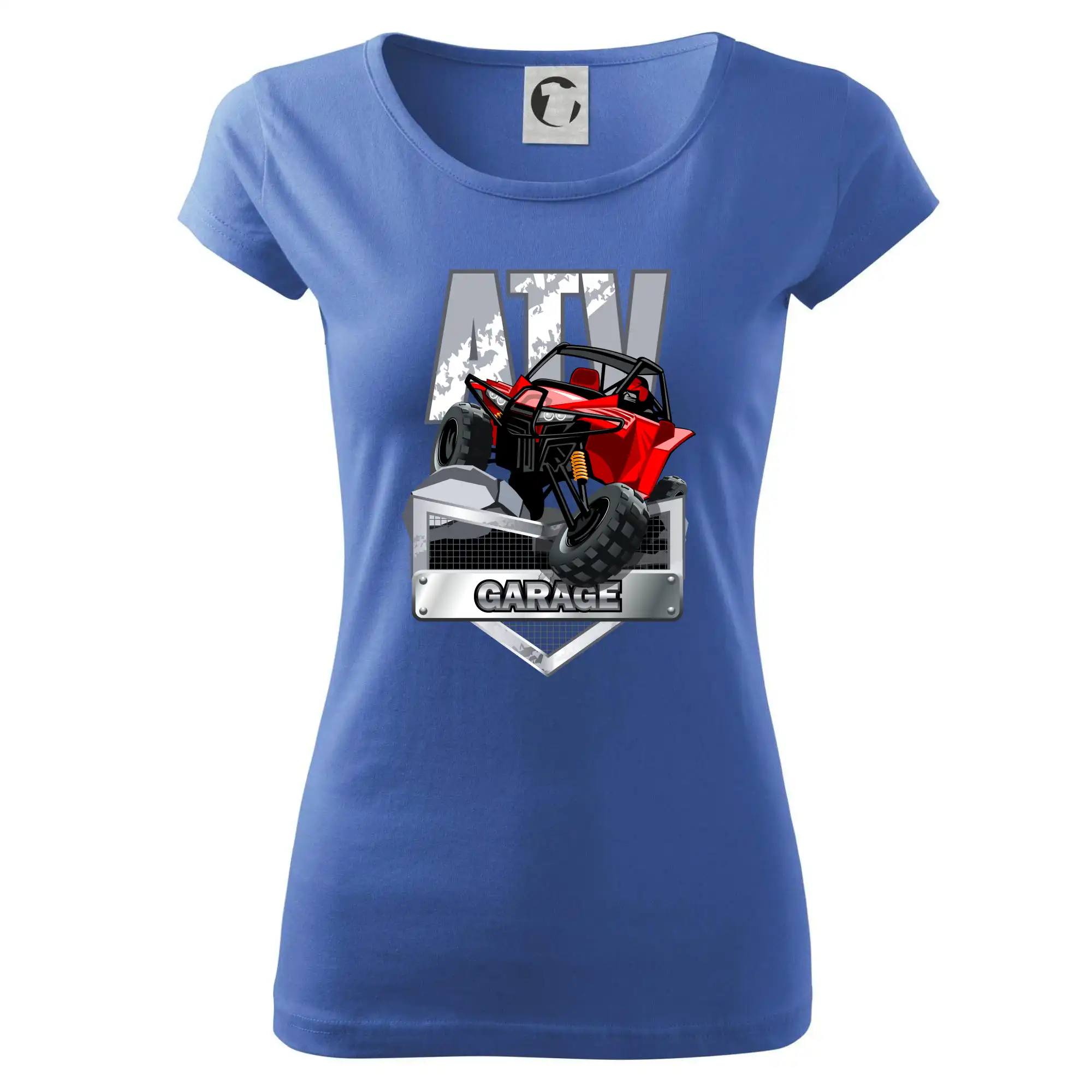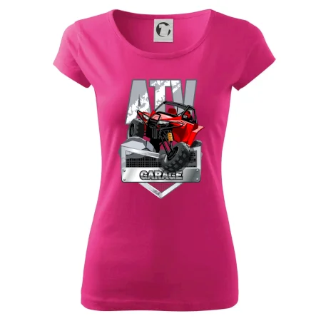Tričko pre motoristu, na ktorom je červená štvorkolka ATV. Motoristické tričko so štvorkolkou musí mať doma každý motorista. Tričko s autom je vhodný darček pre motoristu, ktorý má rád adrenalín. Auto na tričku je ako živé.